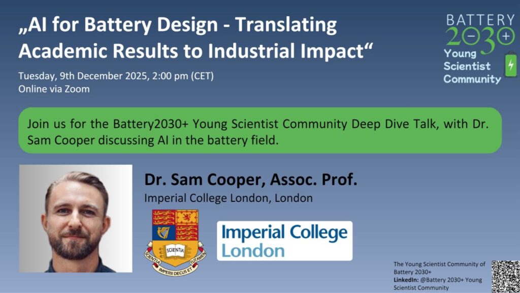 🎙️ Topic: “AI for Battery Design – Translating Academic Results to Industrial Impact”