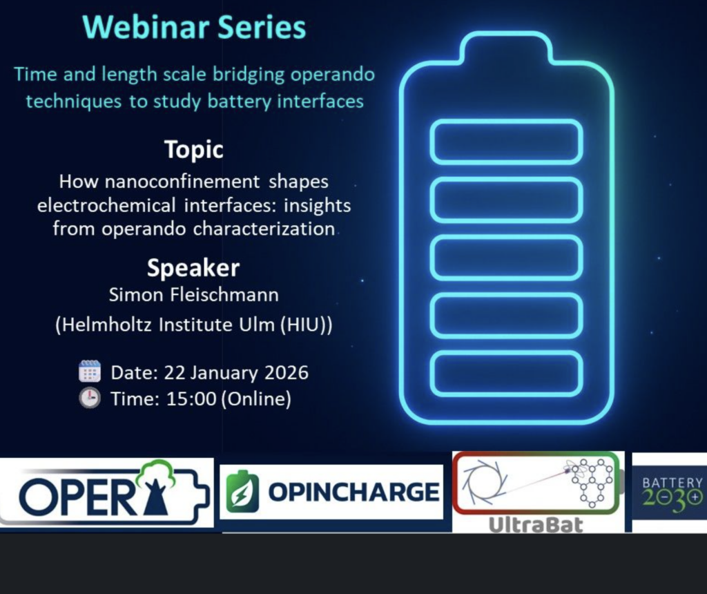 The topic will be “How nanoconfinement shapes electrochemical interfaces: insights from operando characterization” and the speaker is Simon Fleischmann from Helmholtz Institute Ulm (HIU).